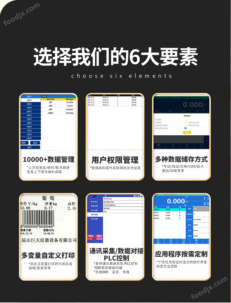 1、 可自定義編輯保存1000組配方,編輯1000種原料名稱及原料條碼,通過PC端EXCEL格式編輯好導入;