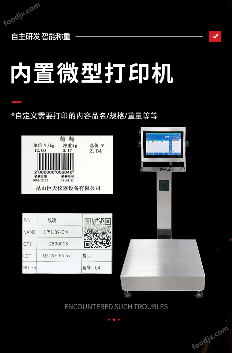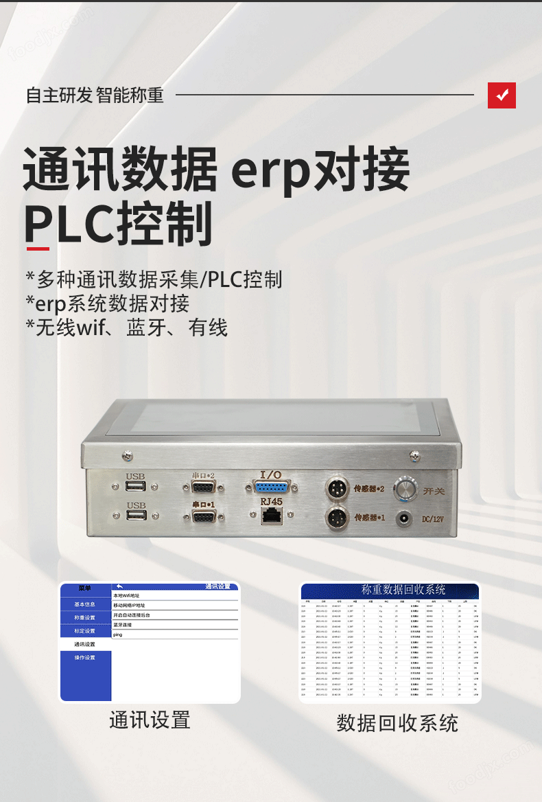 可根據餅干廠的實際需求,定制不同尺寸和材質的秤臺(全不銹鋼結構,符合食品衛生要求),并可選配打印機、掃碼槍、報警燈等外設。支持TCP/IP、RS232等多種通訊協議,輕松對接企業ERP系統,實現生產數據的實時同步與管理。