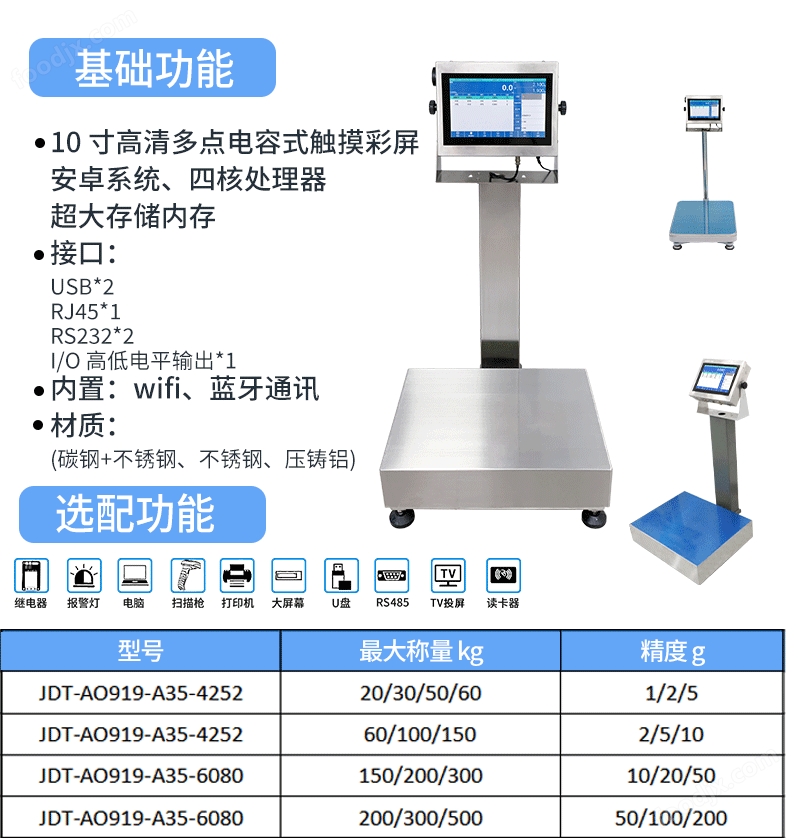 秤盤尺寸(mm) | 300x 400 | 400x 500 | 400x 500 | 450x 600 450x 600 | 500x 600 600x 800 | |