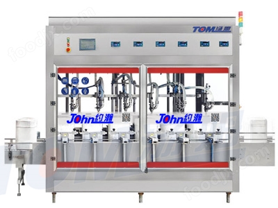 本機(jī)適用于對(duì)流體10kg~50kg的計(jì)重量灌裝,自動(dòng)完成計(jì)數(shù)進(jìn)瓶、計(jì)重量灌裝、輸送出瓶等一系列操作。特別適用于水劑、食用油、潤(rùn)換油的定量灌裝,是食品、醫(yī)藥、化妝品以及精細(xì)化工等行業(yè)的理想包裝機(jī)。
