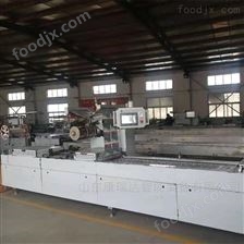 多用途雞柳全自動滾動式真空包裝機的加熱元件全部安裝在上工作室,可避免受包裝物品(特別是液體)的影響而造成的短路等故障,并設計了冷水保護系統,加熱條的使用壽命高于同類產品。定位式工作室在一個工位上垂直升降重復作業。工作臺面角度可調,操作方便效率高,適合帶湯汁食品的真空(充氣)包裝。不銹鋼鏈條、大口徑氣路、無觸點控制、工作計數、走帶清洗等,使設備具有良好的使用性能。設備只有一個真空室,但其真空室可以做的較大,熱封長尺寸也較長,達到了1100mm, 可同時放入幾十個產品抽真空并熱封,其封口裝置采用水冷處理,即使設備連續工作,有水循環系統保護,使加熱條處于恒溫狀態,包裝產品時封口平整牢固。