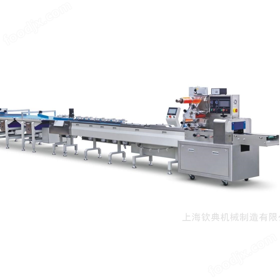 目錄:上海欽典機械制造有限公司>>枕式包裝機>>全自動枕式包裝機>> QD-450W全自動大型拖盒食品伺服往復式枕式包裝機